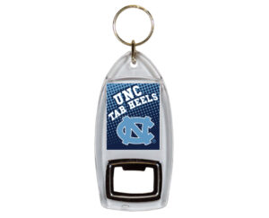 NORTH CAROLINA TAR HEELS KEYCHAIN LUCITE BTL OPENER DOT PATTERN