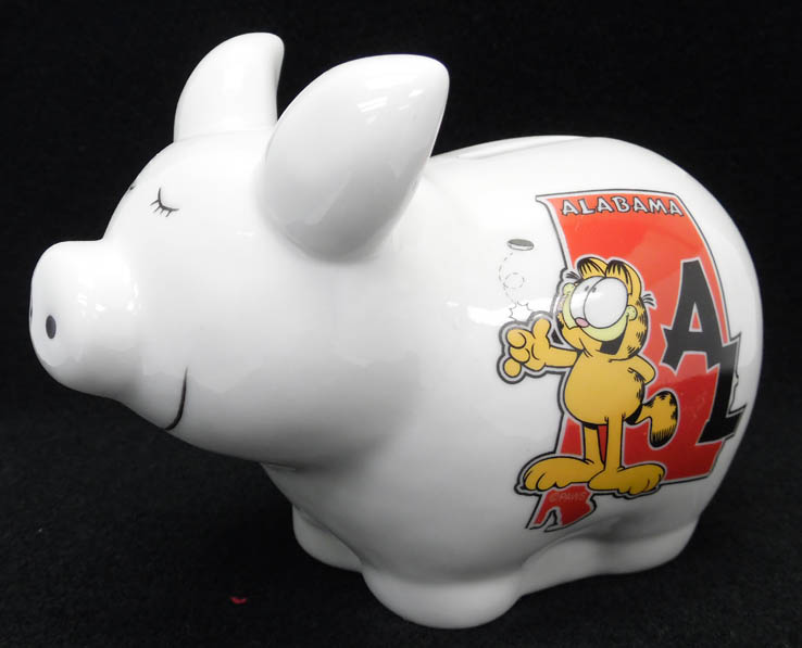 Collectible Alabama souvenir Ceramic bank. Rubber stopper to easily remove money. 6 pieces in inner pack 36 per case.