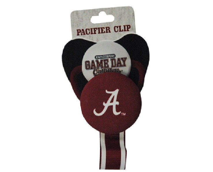 Officially Licensed Product. Alabama Crimson Tide Infant pacifier clip.12 pieces in an inner pack. 144 per case.