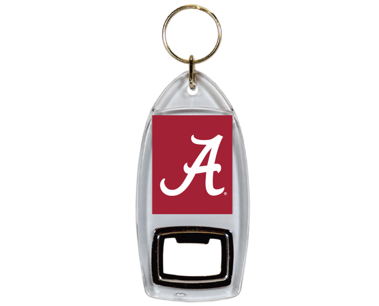 Officially Licensed Product. Alabama Crimson Tide Show your team spirit with this multifunction keychain and bottle opener. Made from sturdy metal and acrylic. 12 in an inner pack, 144 per case.