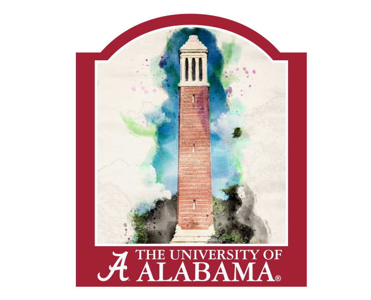 Officially Licensed Product. Alabama Crimson Tide full color artwood magnet featuring our new Watercolor Landmark design