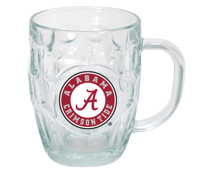 Officially Licensed Product. Alabama Crimson Tide 20oz clear glass mug with full color logo