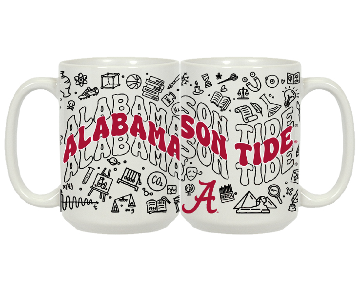 Officially Licensed Product. Alabama Crimson Tide 15oz C-handle mug featuring our new doodle design.