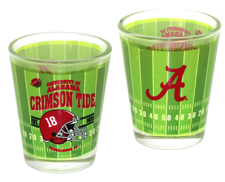 Officially Licensed Product. Alabama Crimson Tide 1.5oz collectors glass our new full wrap Football Field design