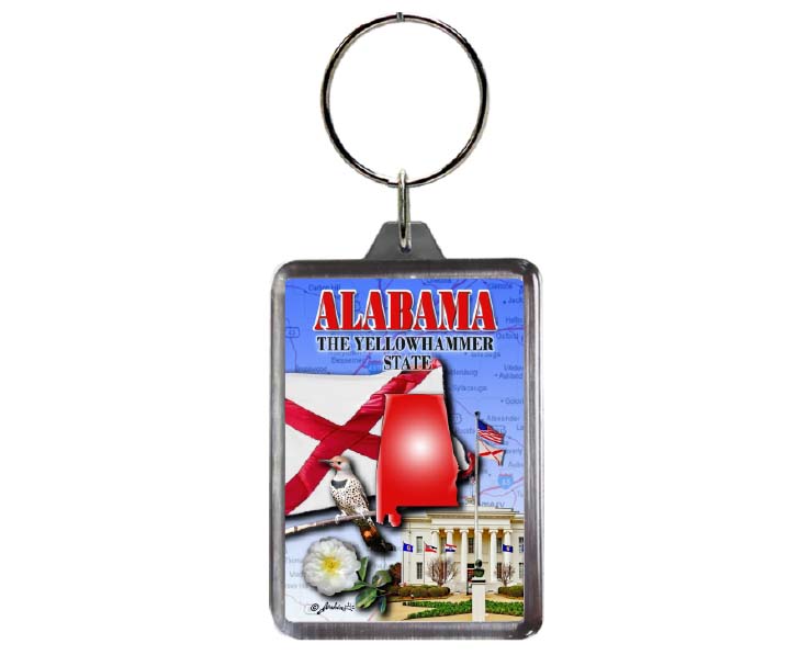 Collectible Alabama souvenir Show where you go and where you’ve been with a great state pride lucite keychain. 12 pieces in inner pack 144 per case.