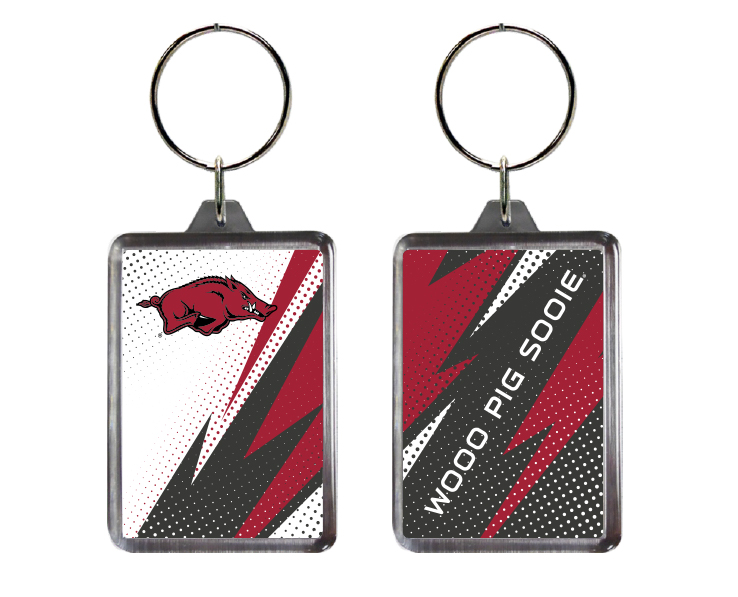 Officially Licensed Product. Arkansas Razorbacks Eye-catching graphics enhance this durable lucite keychain featuring our new Lightning Bolt design
