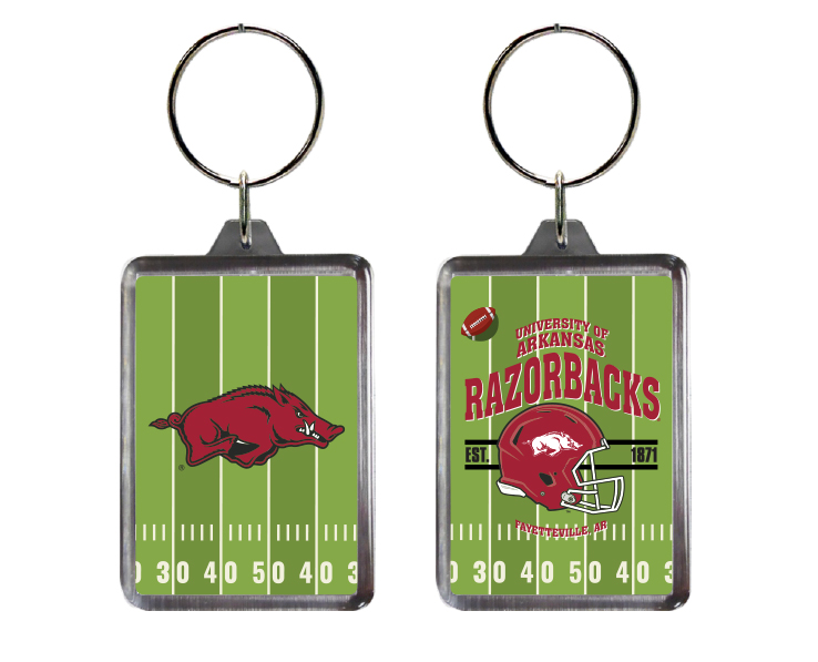 Officially Licensed Product. Arkansas Razorbacks Eye-catching graphics enhance this durable lucite keychain featuring our new Football Field design