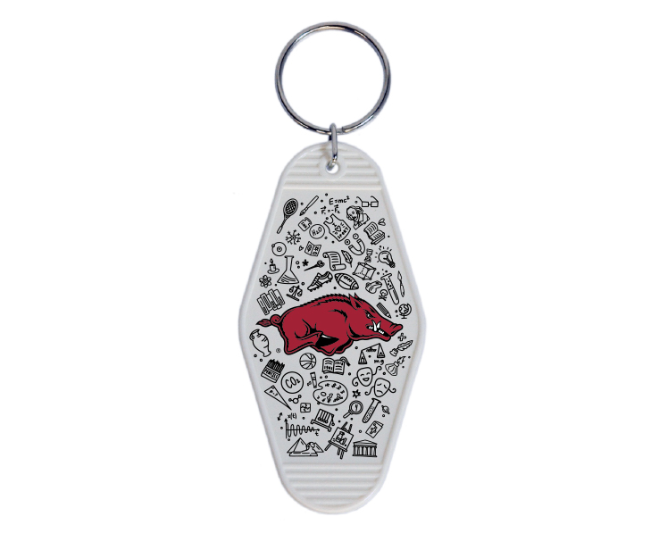 Officially Licensed Product. Arkansas Razorbacks The retro motel key has a cool historic vibe and features our new Doodles design. Made from durable plastic.