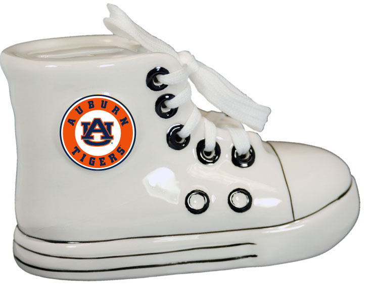 Officially Licensed Product. Auburn Tigers Ceramic bank. Rubber stopper to easily remove money. 6 pieces in inner pack 24 per case.