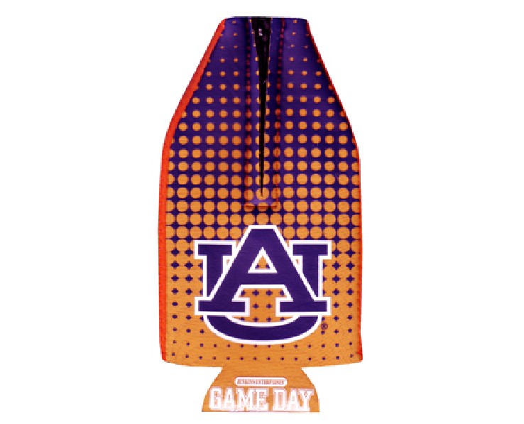 Officially Licensed Product. Auburn Tigers Neoprene zip up bottle koolie. Fits most 12 ounce bottles. Comes with a clip strip for easy display. 12 pieces in inner pack 144 per case.
