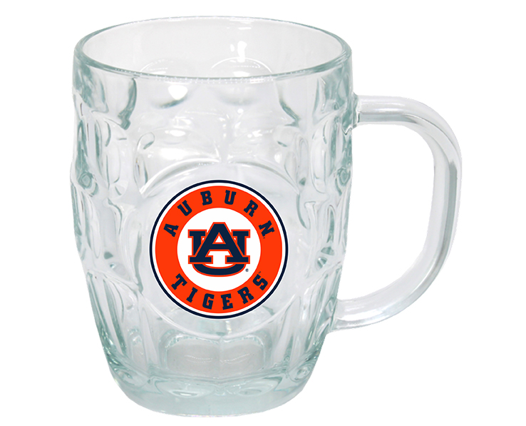 Officially Licensed Product. Auburn Tigers 20oz clear glass mug with full color logo