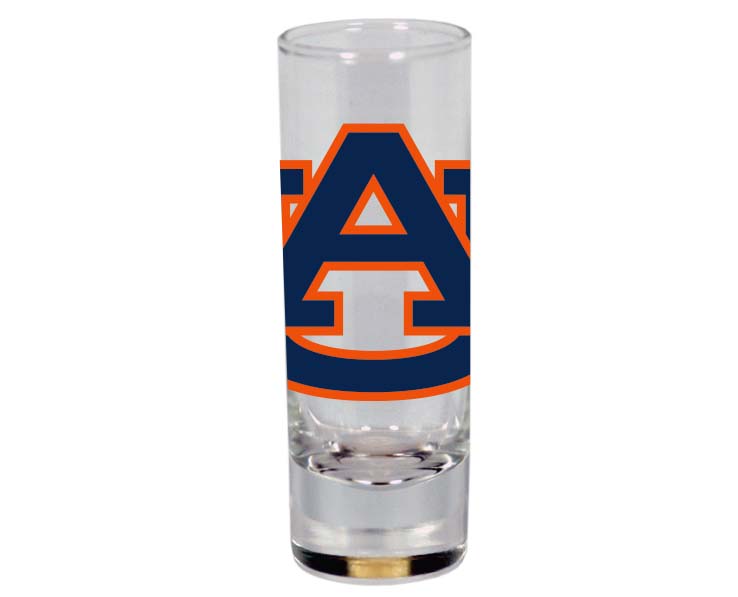 Officially Licensed Product. Auburn Tigers 2 ounce glass shooter with full color team logo. 12 pieces in an inner 144 per case.