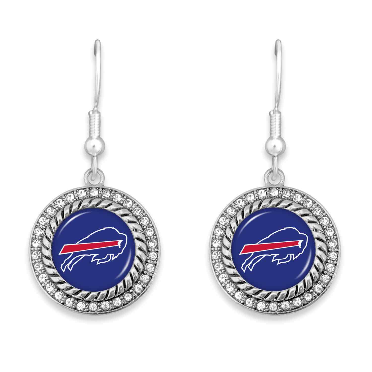 Officially Licensed Product. Get your Buffalo Bills spirit on with chic and sparkly charm earrings! Our Allie design features a bedazzled 3/4 inch domed charm. Brand: Mojo Licensing