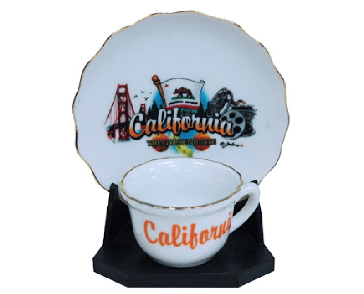 Collectible California souvenir Each ceramic cup and saucer set comes with a display stand. 12 pieces in inner pack 96 per case.