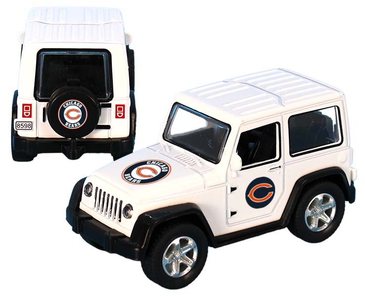 Officially Licensed Product. Chicago Bears toy ATV with pull-back action. This die cast toy truck comes decorated with full color decals on the hood, door panels, and spare tire. Suitable for ages 12 and up. Brand: Mojo Licensing