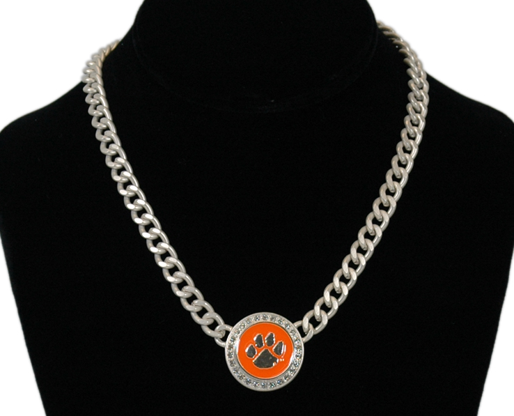 Officially Licensed Product. Clemson Tigers Beautiful iridescent color charms on this attractive necklace. 12 pieces in inner pack 144 per case.