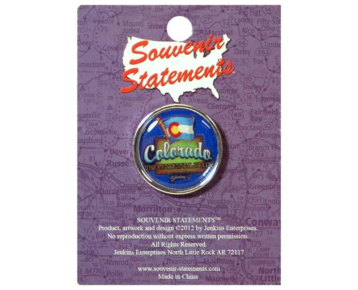 Collectible Colorado souvenir Part of our 50 State program. Get a lapel pin for all 50 states. Can also be worn as a hat tack. Ask about display options.12 pieces in inner pack 144 per case.