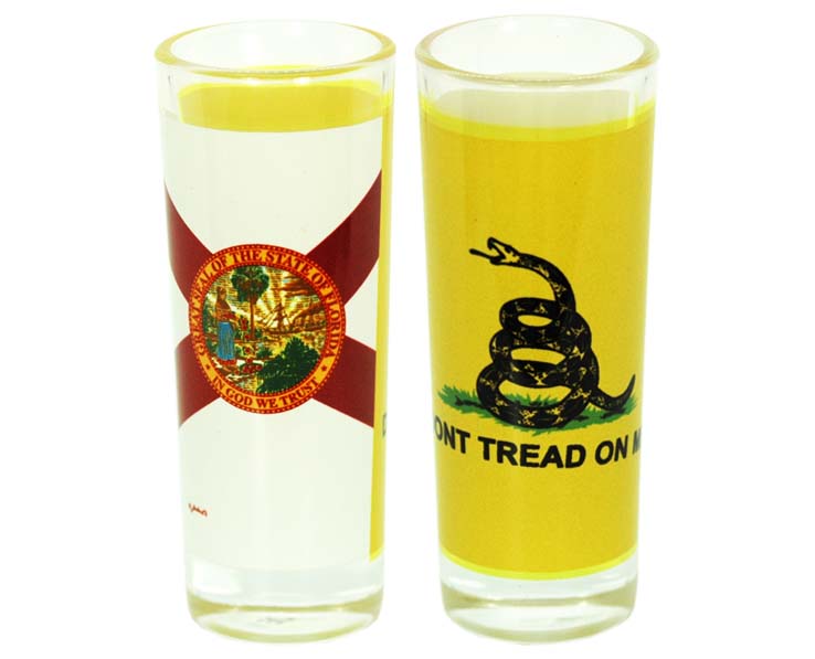 Collectible Florida souvenir 2 ounce glass shooter with full wrap design. 12 pieces in an inner 144 per case.
