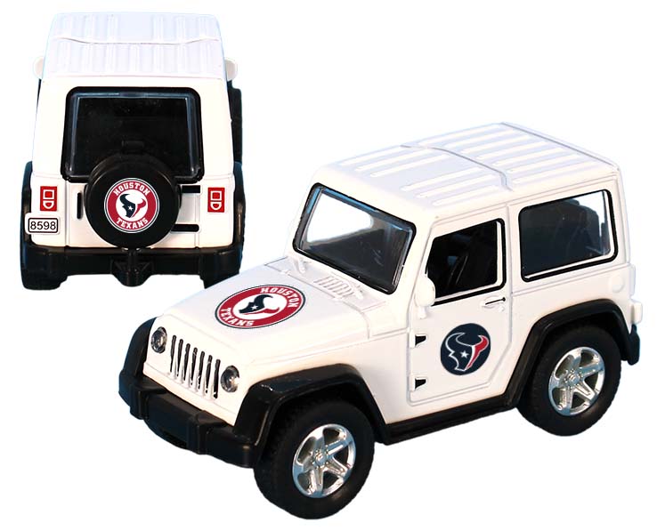 Officially Licensed Product. Houston Texans toy ATV with pull-back action. This die cast toy truck comes decorated with full color decals on the hood, door panels, and spare tire. Suitable for ages 12 and up. Brand: Mojo Licensing