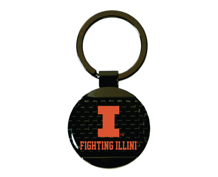 Officially Licensed Product. Illinois Fighting Illini Support your team with the high tech carbon fiber finish on this metal keychain. 12 pieces in inner pack 144 per case.