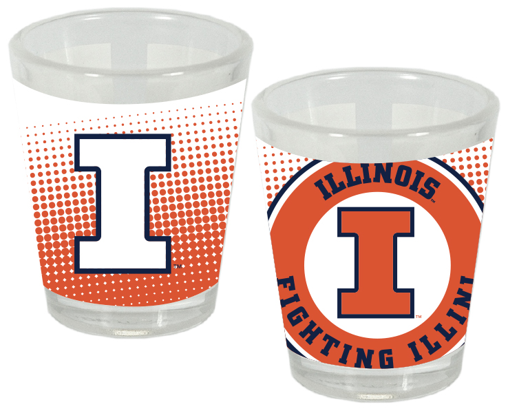 Officially Licensed Product. Illinois Fighting Illini 1.5 ounce quality collector’s glass. 12 pieces in an inner 144 per case.