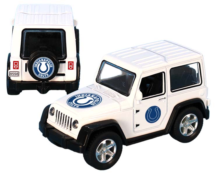 Officially Licensed Product. Indianapolis Colts toy ATV with pull-back action. This die cast toy truck comes decorated with full color decals on the hood, door panels, and spare tire. Suitable for ages 12 and up. Brand: Mojo Licensing