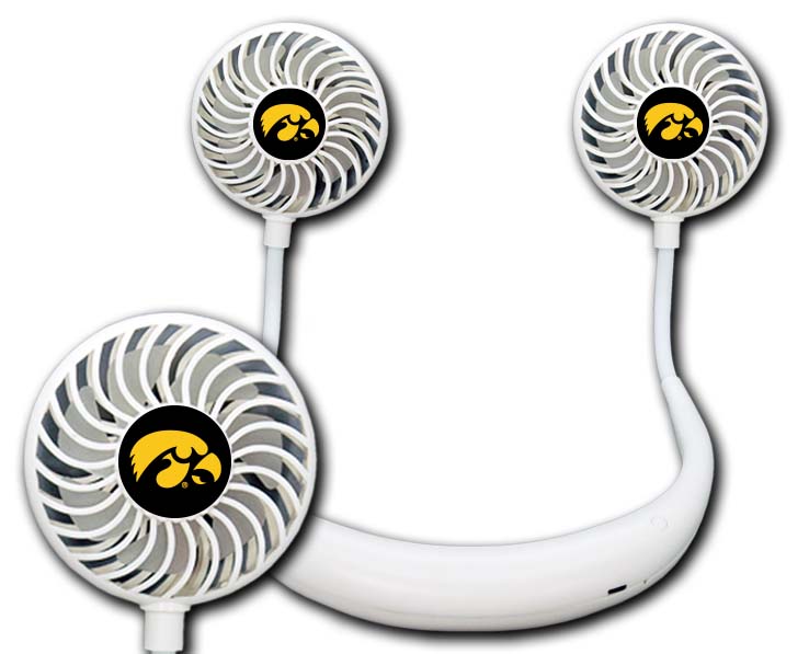 Officially Licensed Product. Iowa Hawkeyes Stay cool and hands-free all summer with our new cordless wearable fan! Complete with a full color team logo on each fan, beating the heat will be a breeze. 12 pieces in an inner pack, 40 per case.