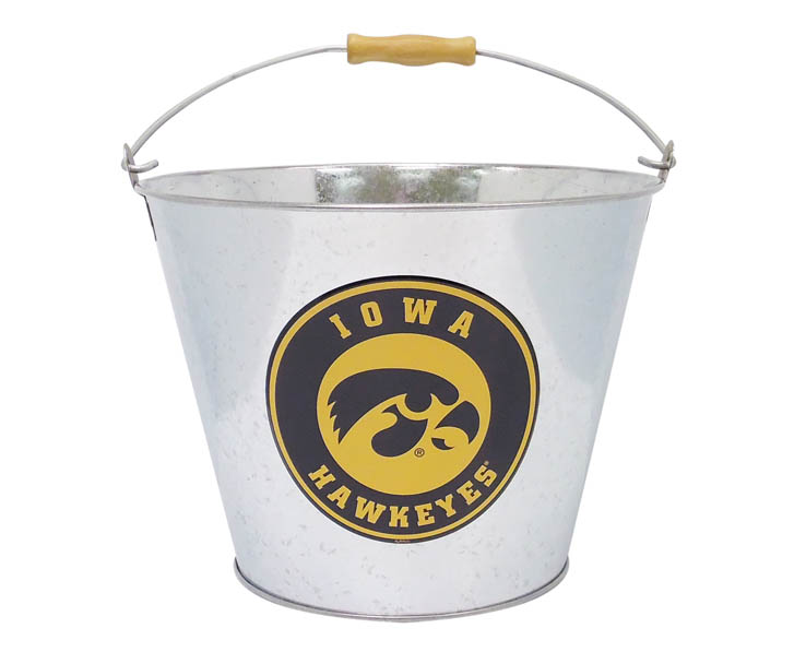 Officially Licensed Product. Iowa Hawkeyes Great for tailgating! 150 ounce galvanized ice bucket. This bucket is sealed to prevent leaking. 6 pieces in an inner pack. 24 per case.