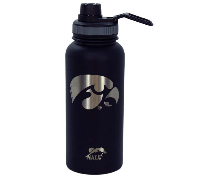 Officially Licensed Product. United States Iowa Hawkeyes 36 ounce NALU Metal water bottle features no sweat double wall stainless steel construction for superior heat and cold retention, durable powder coating, and rugged lid with screw top closure . Recommended hand wash only.