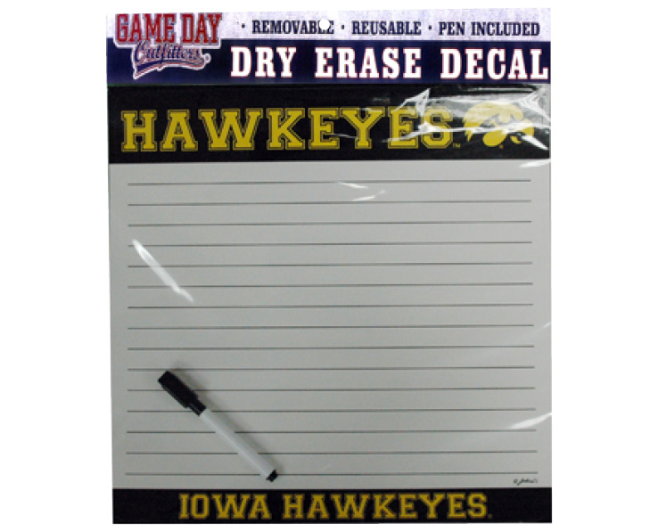 Officially Licensed Product. Iowa Hawkeyes 13″ x 13″ dry erase sticker has removeable adhesive for easy application. 12 pieces in an inner 96 per case.