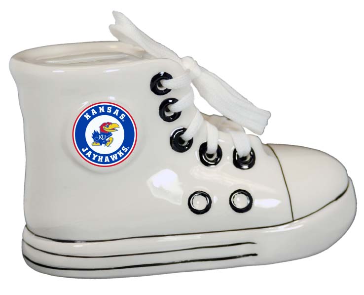 Officially Licensed Product. Kansas Jayhawks Ceramic bank. Rubber stopper to easily remove money. 6 pieces in inner pack 24 per case.