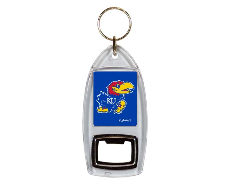 Officially Licensed Product. Kansas Jayhawks Show your team spirit with this multifunction keychain and bottle opener. Made from sturdy metal and acrylic. 12 in an inner pack, 144 per case.