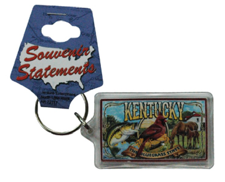 Collectible Kentucky souvenir Show your state pride with a lucite keychain. Eye-catching full color graphics on both sides. 12 in an inner pack, 144 per case.