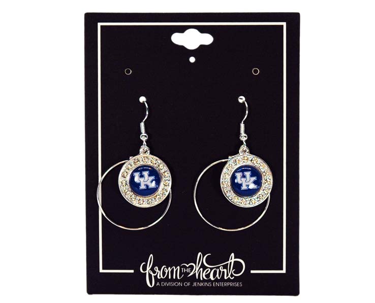 Officially Licensed Product. Kentucky Wildcats Show your team pride with this mini logo charm earring with outer hoop. Carded for easy display. 12 pieces in an inner pack 144 per case.