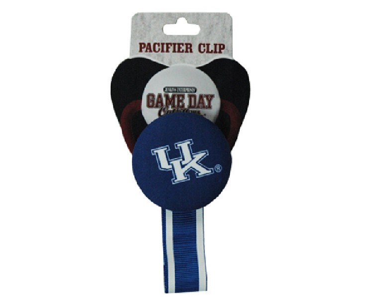 Officially Licensed Product. Kentucky Wildcats Infant pacifier clip.12 pieces in an inner pack. 144 per case.