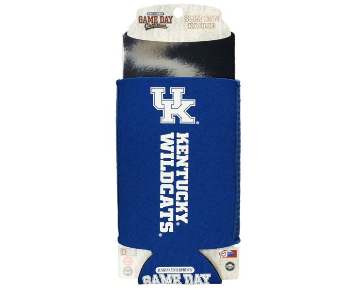 Officially Licensed Product. Kentucky Wildcats Collapsible neoprene pocket can koolie. Fits most slim cans. Folds flat for easy storage or to slip in a pocket. Comes with a clip strip for easy display. 12 pieces in inner pack 144 per case.