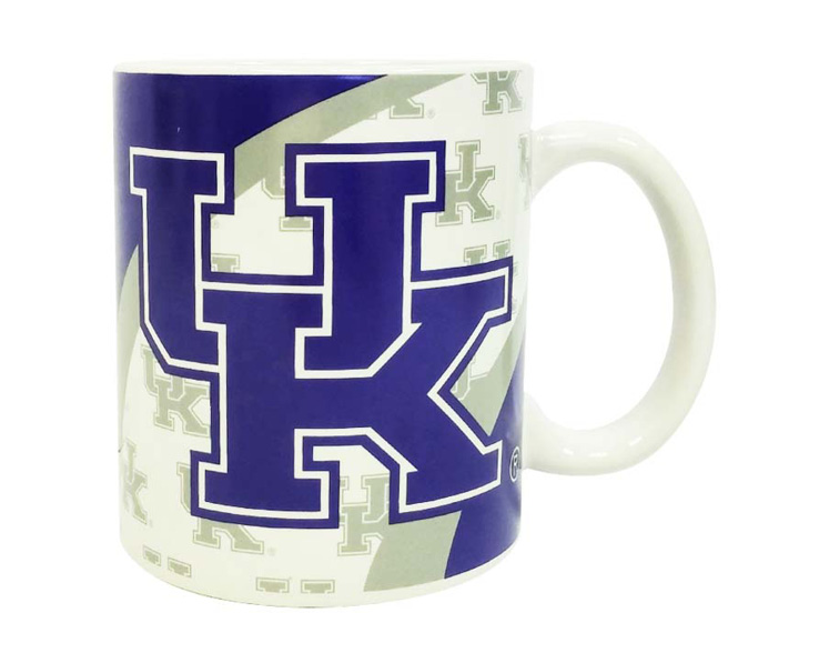 Officially Licensed Product. Kentucky Wildcats 11 ounce ceramic mug printed with our popular vortex design. 6 pieces in an inner pack 36 per case.