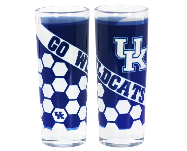 Officially Licensed Product. Kentucky Wildcats 2 ounce glass shooter with our all new honeycomb design featuring team slogan and logo. 12 pieces in an inner 144 per case.