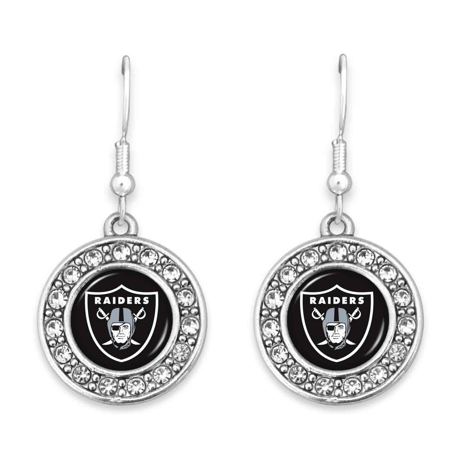 Officially Licensed Product. Get your Las Vegas Raiders spirit on with chic and sparkly charm earrings! Our Abby Girl design features a bedazzled 3/4 inch domed charm. Brand: Mojo Licensing