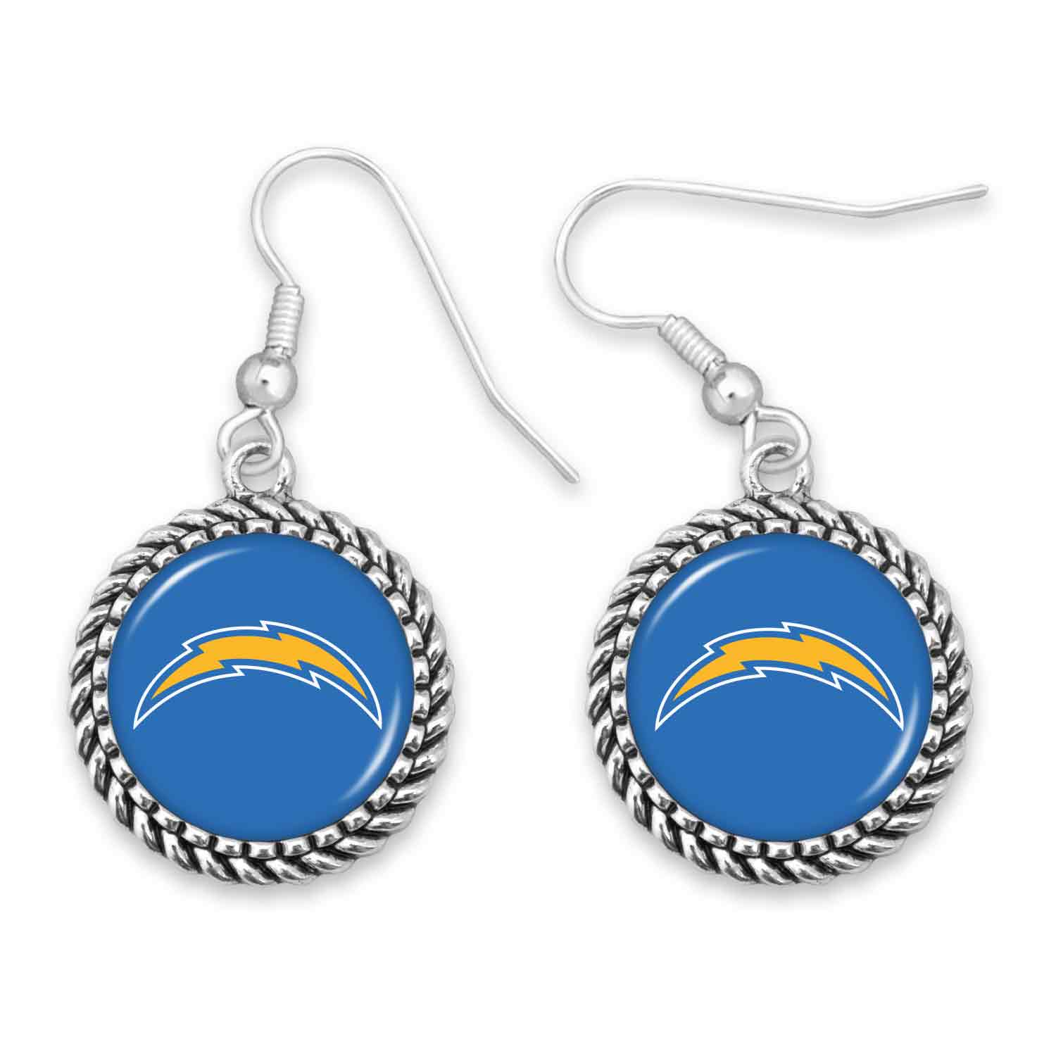 Officially Licensed Product. Get your Los Angeles Chargers spirit on with chic and sparkly charm earrings! Our Olivia design features a twisted rope domed charm. Brand: Mojo Licensing