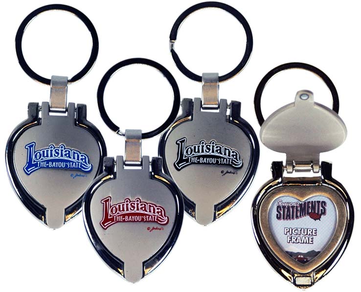 Collectible Louisiana souvenir Keep your loved ones in your heart with this heart locket keychain. It has a magnetic closure and comes with the state name in 3 assorted colors per dozen. 12 pieces in inner pack 144 per case.