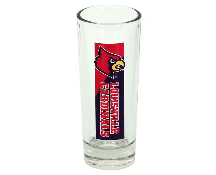 Officially Licensed Product. Louisville Cardinals 2 ounce glass shooter with full color team logo. 12 pieces in an inner 144 per case.