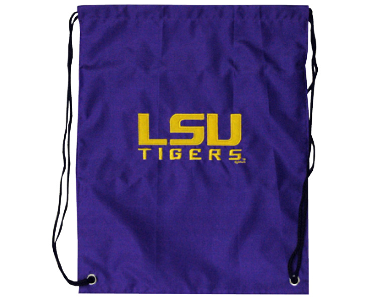 Officially Licensed Product. LSU Tigers Embroidered nylon string sack backpack. 14 pieces in an inner box. 144 per case.