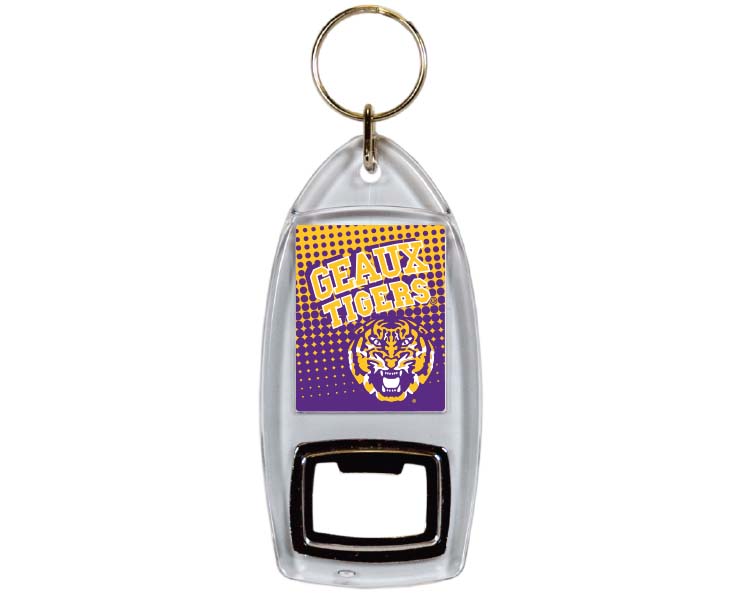 Officially Licensed Product. LSU Tigers Show your team spirit with this multifunction keychain and bottle opener. Made from sturdy metal and acrylic. 12 in an inner pack, 144 per case.