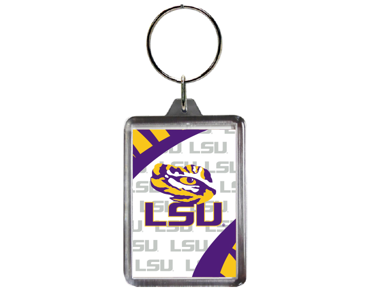 Officially Licensed Product. LSU Tigers Eye-catching graphics enhance this durable lucite keychain. 12 pieces in inner pack 144 per case.