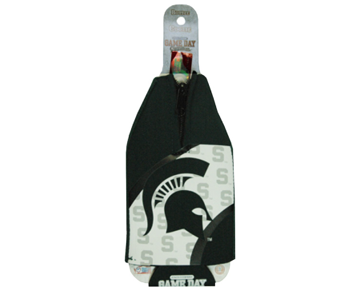 Officially Licensed Product. Michigan State Spartans Neoprene zip up bottle koolie. Fits most 12 ounce bottles. Comes with a clip strip for easy display. 12 pieces in inner pack 144 per case.