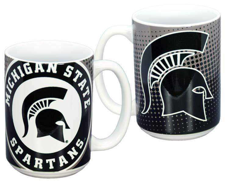 Officially Licensed Product. Michigan State Spartans Full color wrap around art on a 15 ounce ceramic mug. 6 pieces in an inner pack 36 per case.