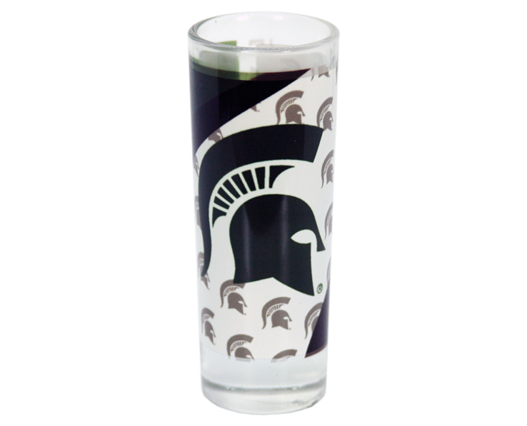 Officially Licensed Product. Michigan State Spartans 2 ounce glass shooter with full color team logo. 12 pieces in an inner 144 per case.