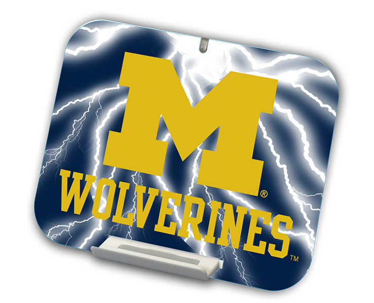 Officially Licensed Product. Michigan Wolverines Perfect for home or office! 5w Qi charger wirelessly charges your cell phone. It can lay flat or it can be used with the attached cradle to stand you phone up. Making it easy to watch videos while it charges or just so you can see the cool graphic when not charging. 12 pieces in an inner pack 108 per case.