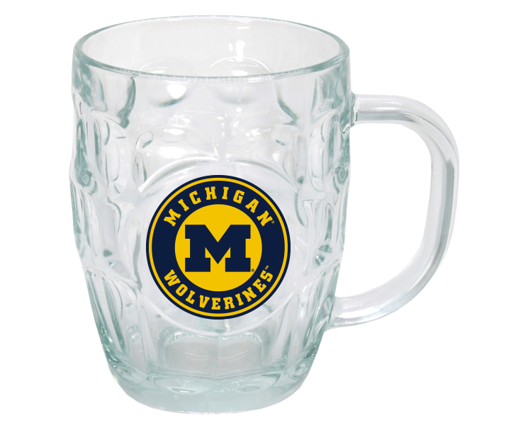 Officially Licensed Product. Michigan Wolverines 20oz clear glass mug with full color logo